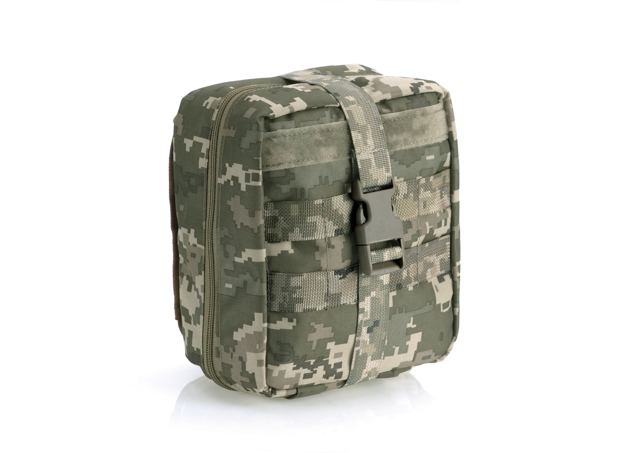 Передня сторона підсумку оснащена основою-липучкою для фіксації патчів та шевронів, а також комірками pals, для кріплення підсумків (з кріпленнями MOLLE, карабінів, джґутів, турнікетів, ліхтарів та інших аксесуарів). Система MOLLE дозволяє закріпити аптечку на будь-яку платформу, яка має pals комірки: на розвантаження, РПС, наплічник та ін. Підсумок оснащений блискавками з двома бігунками, які забезпечують плавний хід.